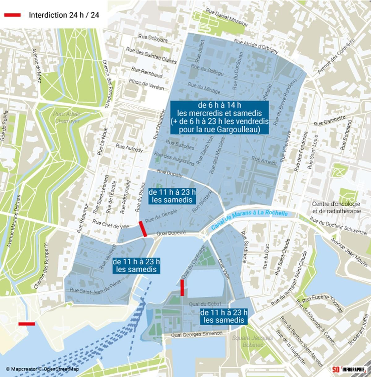 Pour sécuriser l'hyper-centre, la municipalité de La Rochelle impose aux cyclistes et usagers de trottinettes de descendre de leur monture dans des secteurs comme la Grosse-Horloge ou le Marché central, à des créneaux précis.